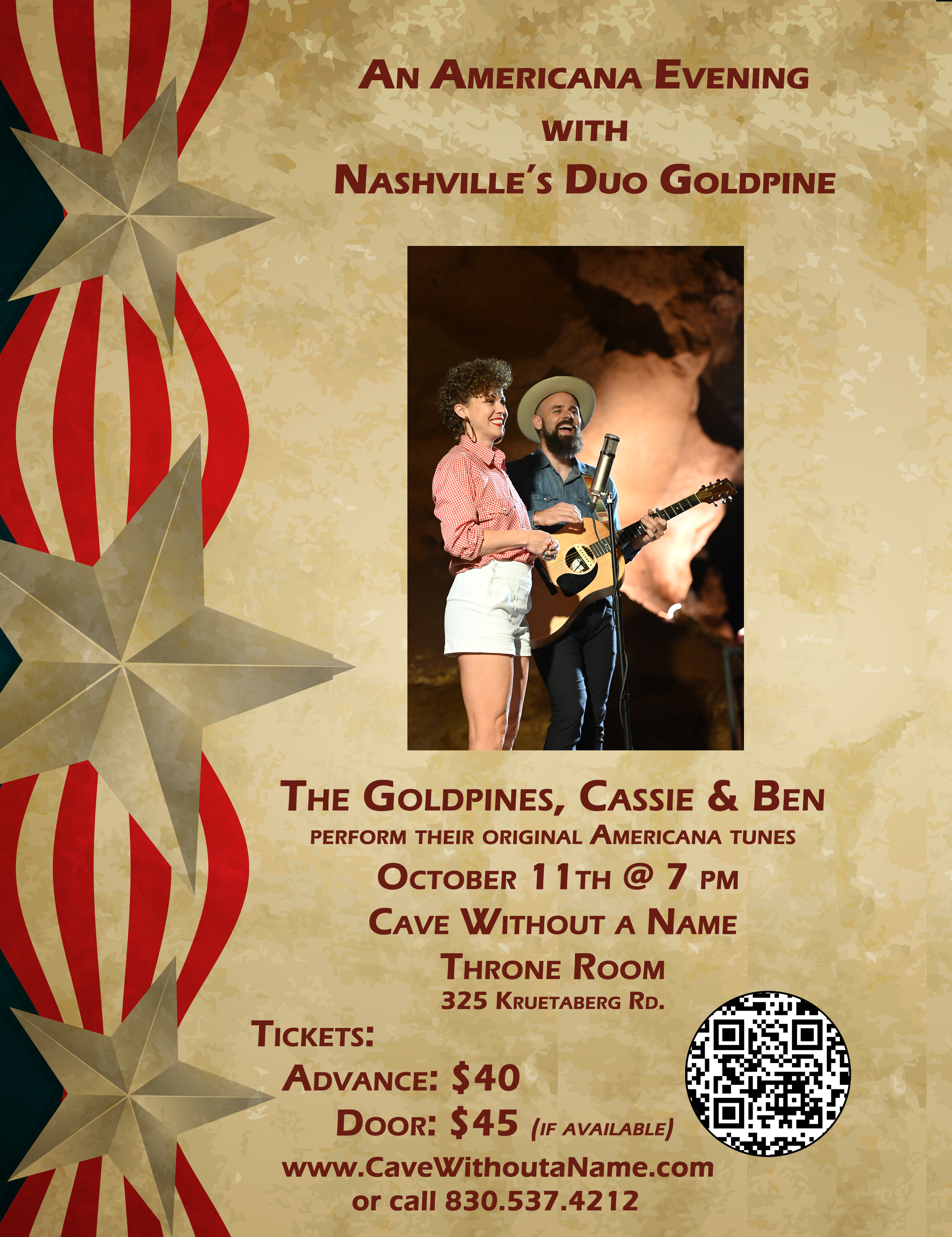 Alternatively, call the cave - 830.537.4212 - during normal business hours to purchase tickets via phone. All advance tickets are "will-call" on arrival for the concert. It's important to note that concert ticketing is final. Once purchased, tickets cannot be refunded or exchanged. We appreciate your understanding and look forward to your visit.