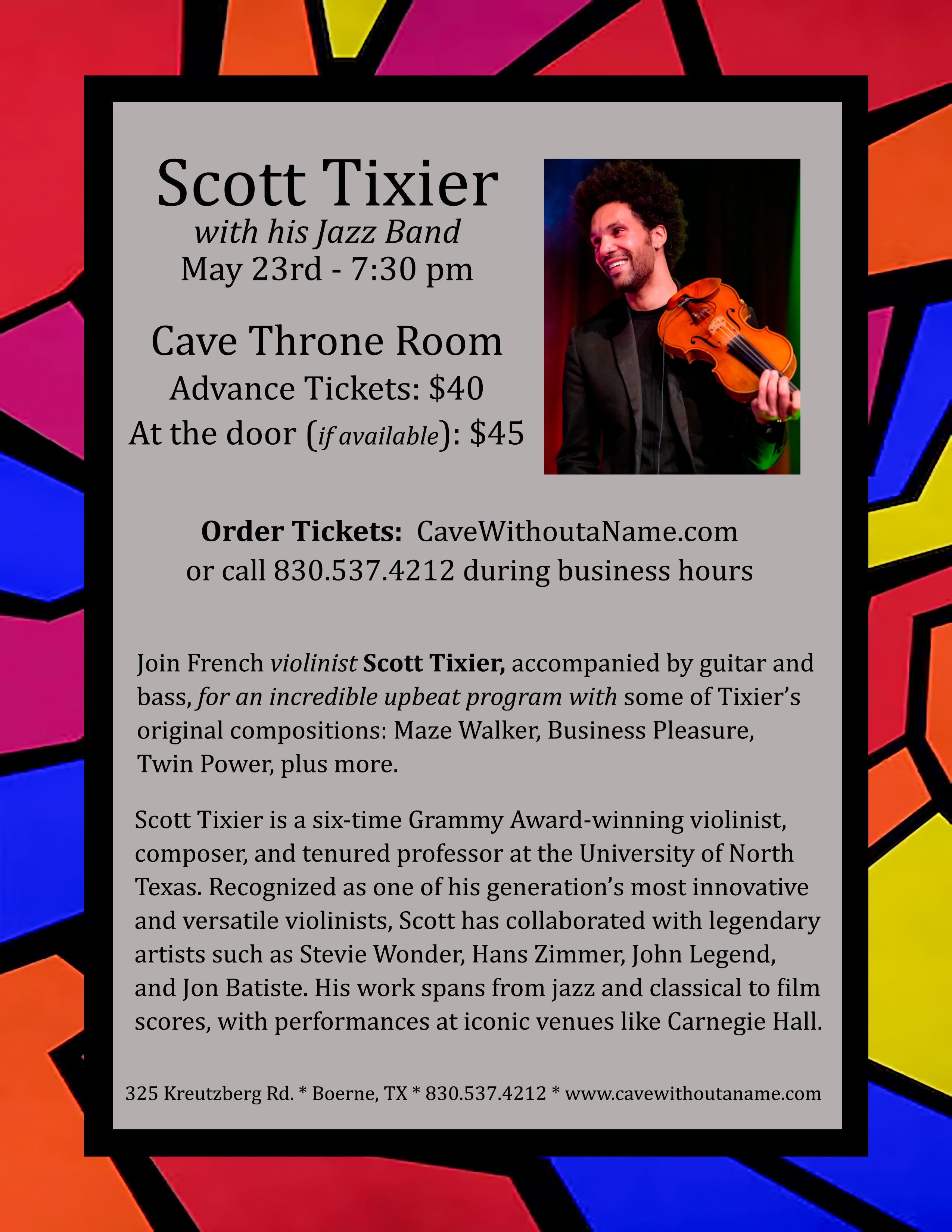Alternatively, call the cave at 830.537.4212 during business hours to purchase tickets by phone. All advance tickets are "will-call" upon arrival at the concert.