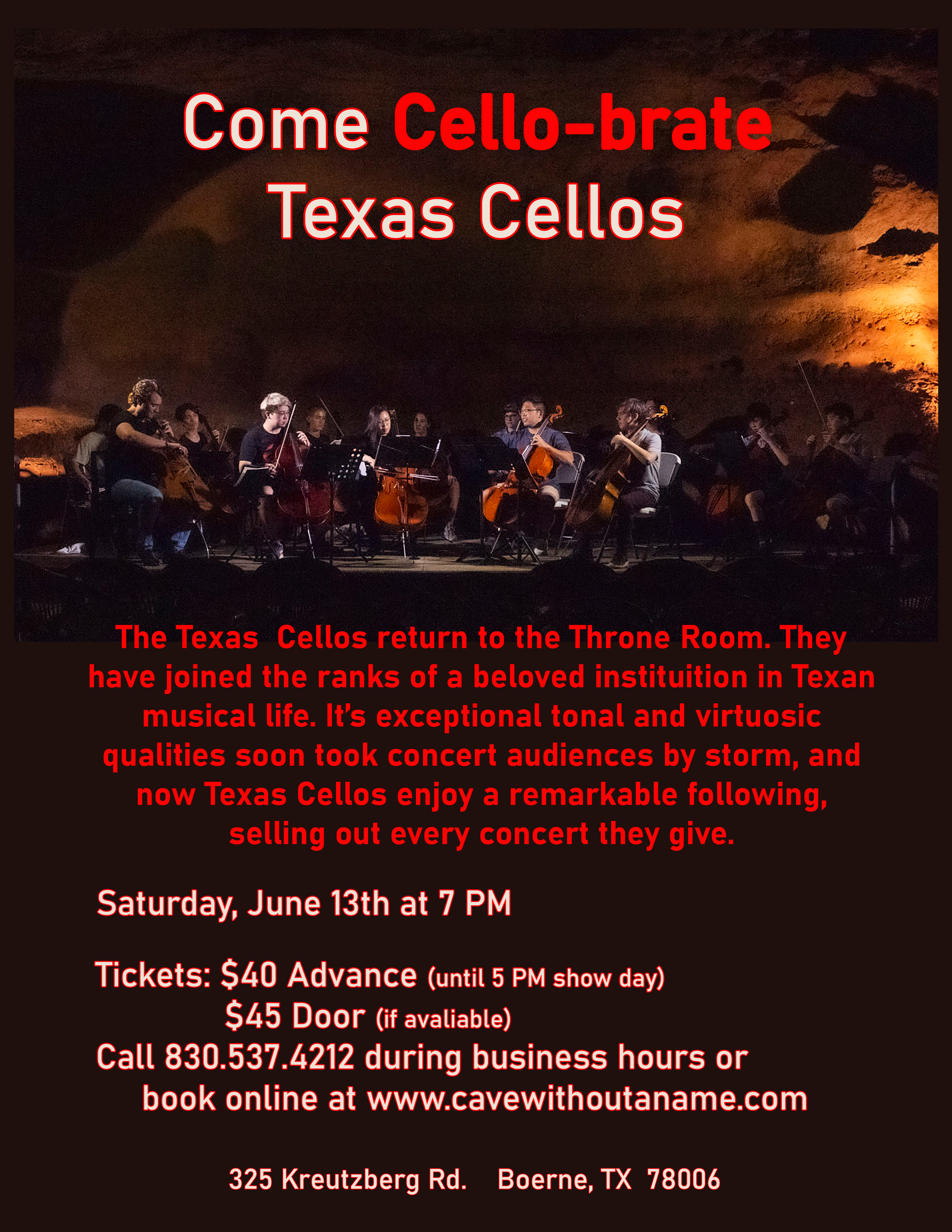All tickets are will-call when arriving for the concert. As an alternative to online ticketing, call the cave at 830.537.4212 during regular business hours to purchase tickets by phone.